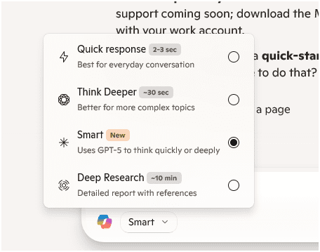 - Select the ‘Smart’ option to enable GPT-5.