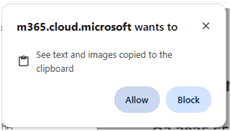 - Select ‘Allow’ to allow M365 to see text/images copied to the clipboard when requested.