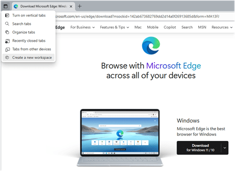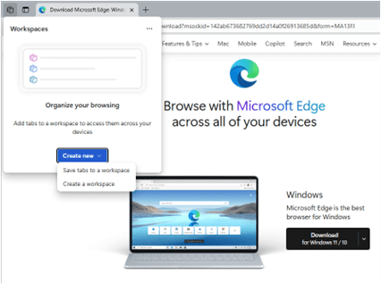 TIP: Opening new tabs in a Workspace will keep them ‘open’ until the tab is physically closed. Edge saves the tab’s history to the most recently accessed page.