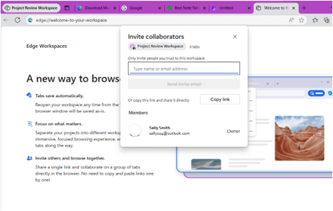 Once you have created a Microsoft Edge Workspace, you can invite others to join and collaborate with you in the new space.