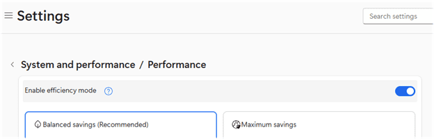 TIP: Efficiency Mode reduces resource usage but may slightly throttle performance for active tasks. It’s more beneficial for devices with limited memory, or battery constraints. If you notice sluggishness, test toggling the feature to ‘Off.’