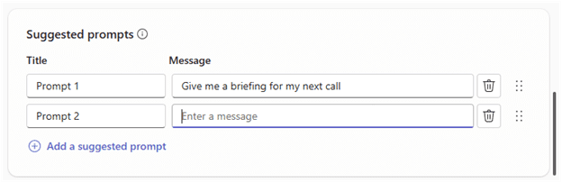 - Add Suggested prompts: